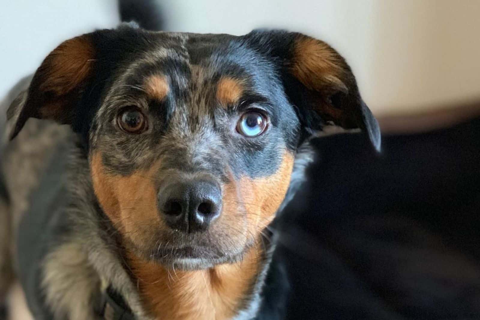 The Catahoula Blue Heeler mix dogs are known for having different colored eyes, which is an occurrence known as heterochromia.