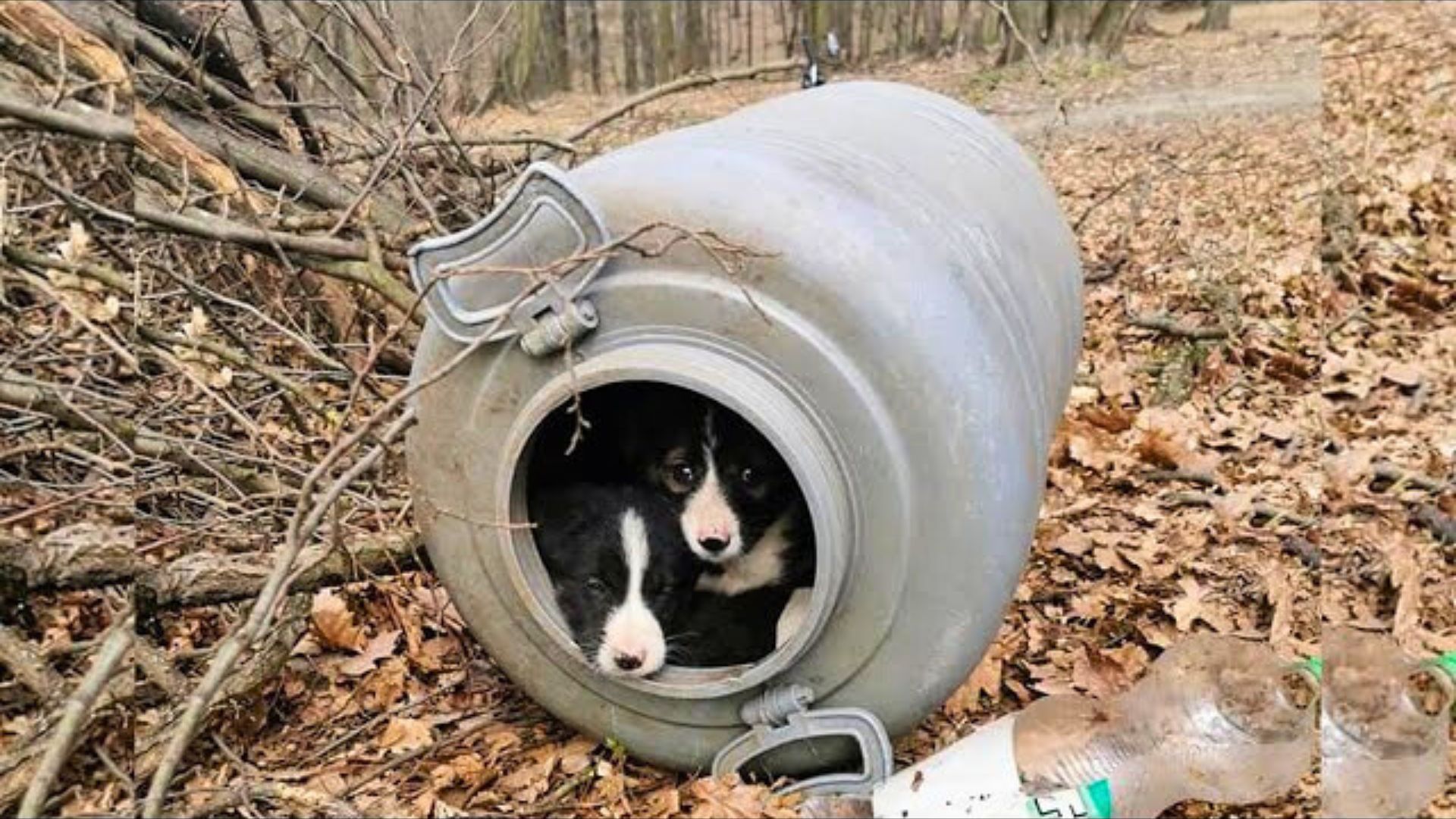 It’s not uncommon to see stray dogs or puppies being abandoned in a forest. A man was walking through the forest and stumbled upon a weird barrel in the middle of nowhere.